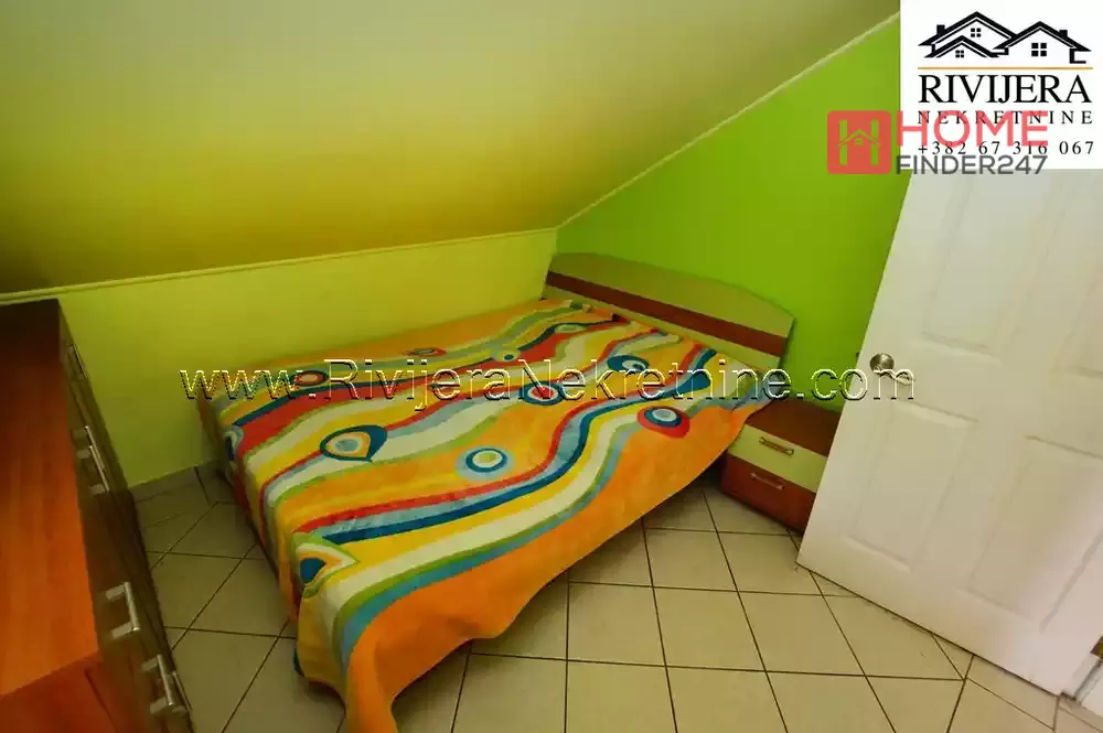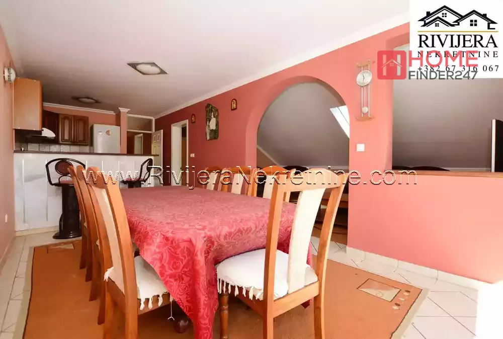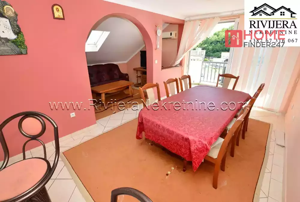 Two-bedroom apartment in Meljina, Herceg Novi. Apartment in a smaller residential building, attic 67 m2. Room layout: entrance hall, bathroom, two bedrooms, kitchen with living room, terrace. Distance from the sea, and beach, is 150 meters. Price €130,000