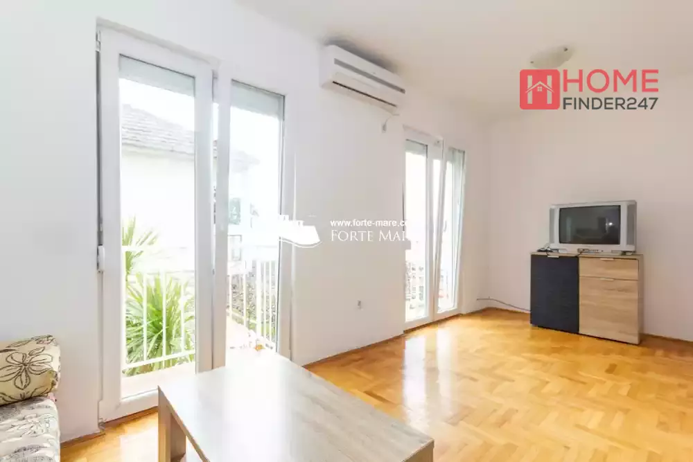 Apartment with panoramic sea view for rent in Savina, municipality of Herceg Novi. Apartment with a total area of 90m2. In front of the building there is parking. The apartment has a living room, kitchen and dining area, hall, three bedrooms, two bathrooms, three terraces.