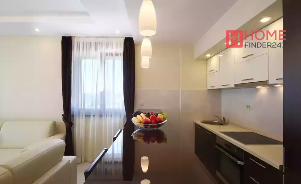 Elk appartement is volledig uitgerust met een moderne keuken met kookplaat, oven, vaatwasser en koelkast. Ruime eet- en zithoek met luxe leren meubels die kunnen worden omgevormd tot een bed voor gasten.