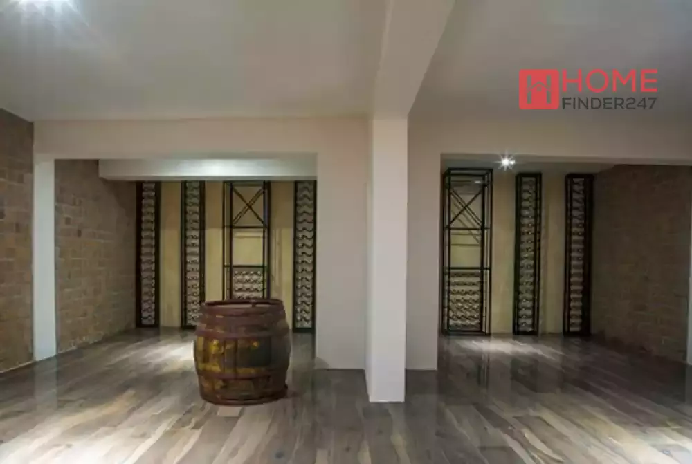 De villa heeft een ruime kelder met wijnkelder en voorraadruimte. Op de begane grond vind je een sauna, twee slaapkamers met badkamer, een slaapkamer met en suite badkamer, en balkons en terras voor ontspanning. Op de eerste verdieping bevindt zich een grote woonkamer met open haard, gastentoilet, wasruimte, opslagruimte, keuken met eetkamer en een balkon. De tweede verdieping biedt nog twee slaapkamers met bad en suite, een inloopkast, balkons en een opbergruimte.