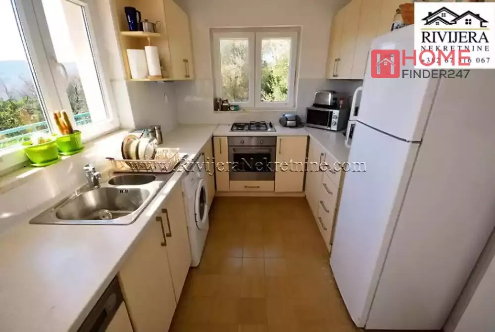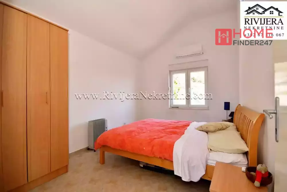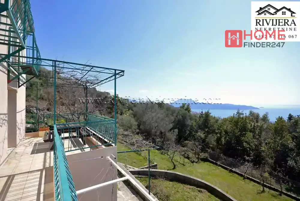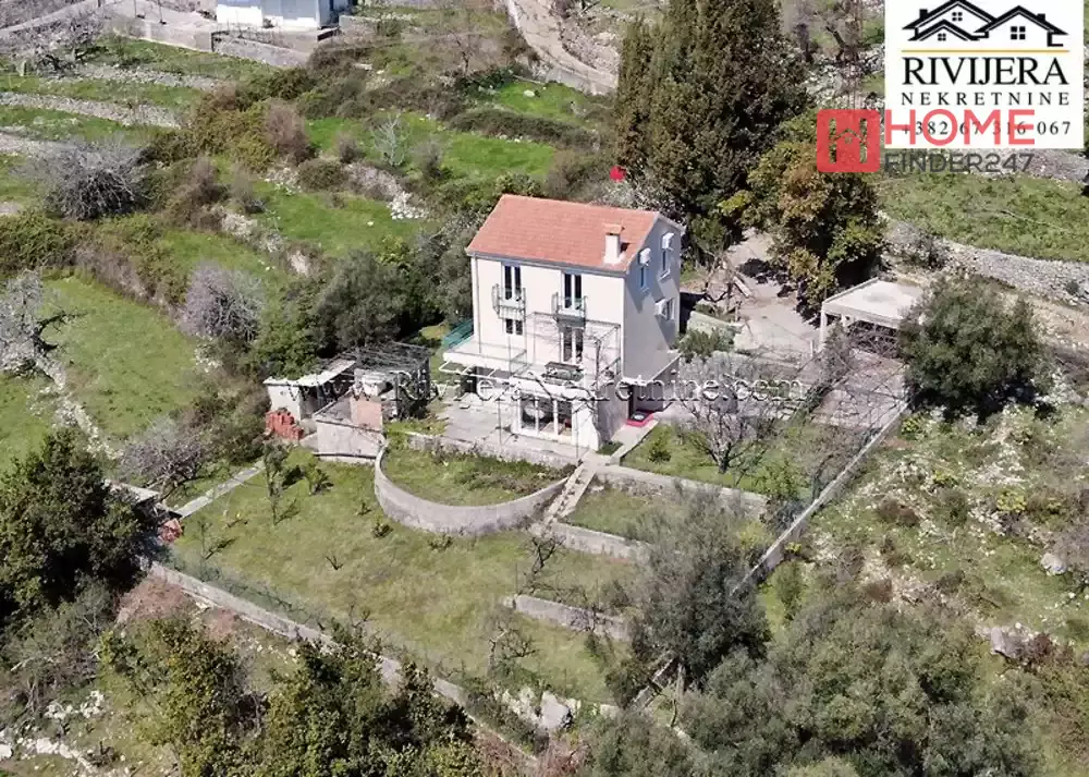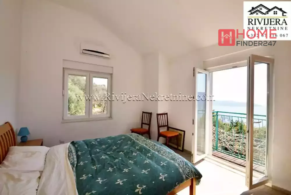 Holiday house in Suscepan Boka bay. House has two apartments, ground floor one bedroom apartment 36 sqm. First and second floor, duplex apartment  108 sqm. Layout: entrance hall, toilet, living room with kitchen, balcony with sea view. Top floor: hall, 3 bedrooms, 2 bathrooms. House have very nice sea view, yard total area 1.180 sqm. Possibility to make a pool, etc.. Distance to the Igalo 5 km, Herceg Novi 8 km. House is registered in Cadaster in legalization process. Price: 215:000 euros, negotiable.