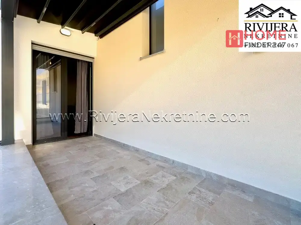 Ndërtesa ndodhet vetëm 200 metra nga deti në teren të thjeshtë në Bijela. Terasa me çati dhe mure tërheqëse, të kontrolluara nga larg, e bëjnë atë një ambient të përshtatshëm si dhomë e qetë e jetesës.
