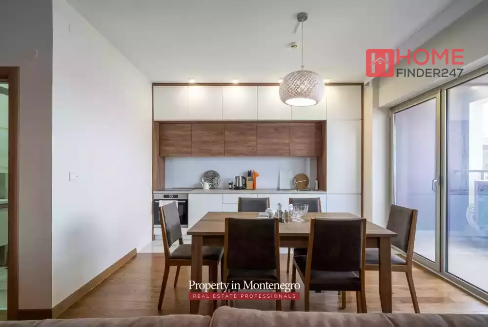 Stan je veoma svetao i pruža odličan panoramicni pogled na celu Budvu i rezidencijalni kompleks Dukley Gardens.