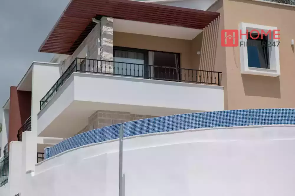 The villa has a swimming pool, 3 rooms and 3 bathrooms, a large living room with kitchen and dining room, open terrace and beautiful sea view. Garage for 1 car.