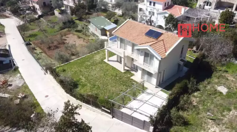 Technical description of the house: finishing materials made in Italy, Italian plumbing, energy efficient windows made in Germany, solar panels for water heating, air conditioning in each room, satellite TV, intercom, alarm, automatic doors, spare water tank, sewer.