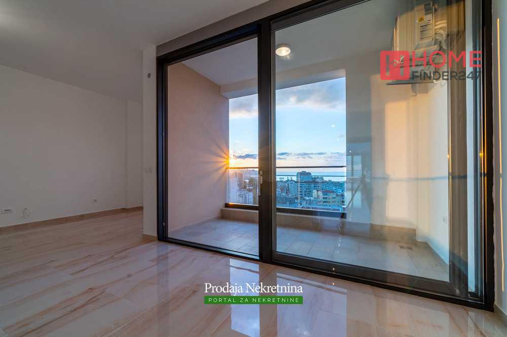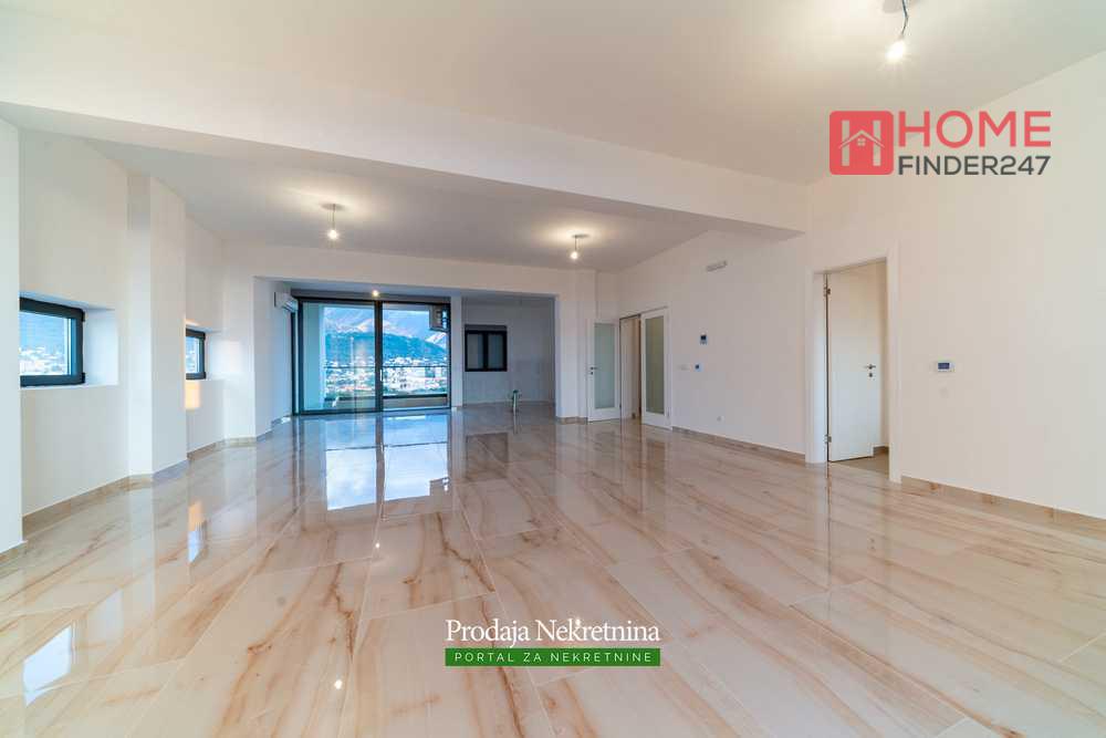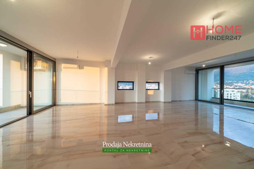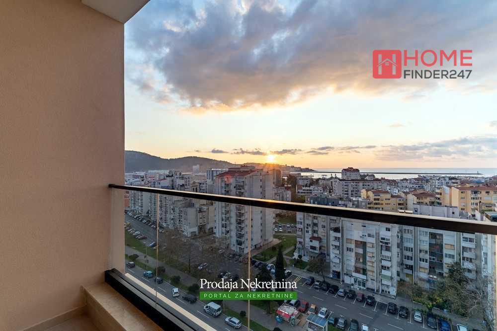 The 135m2 property is of a very high quality and it provides stunning view over Bar and sea. It consists of two bedrooms and two bathrooms, an open concept living room with kitchen and dining room and a spacious balcony.