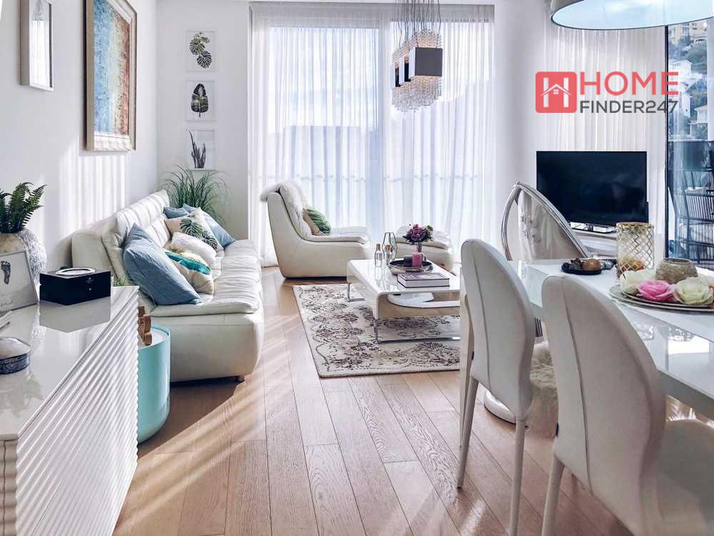 108m² genişliğinde, iki yatak odası ve iki banyo ile ailece rahat yaşama fırsatı sunuyor.