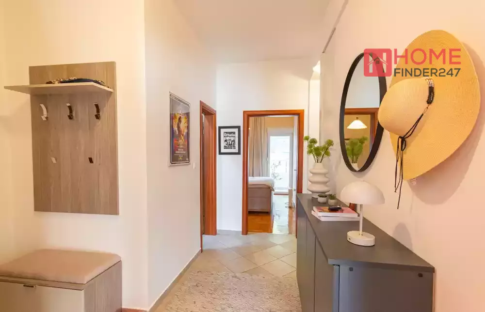 Deniz manzaralı, 73m² büyüklüğünde, tam mobilyalı, iki yatak odalı bir daire.